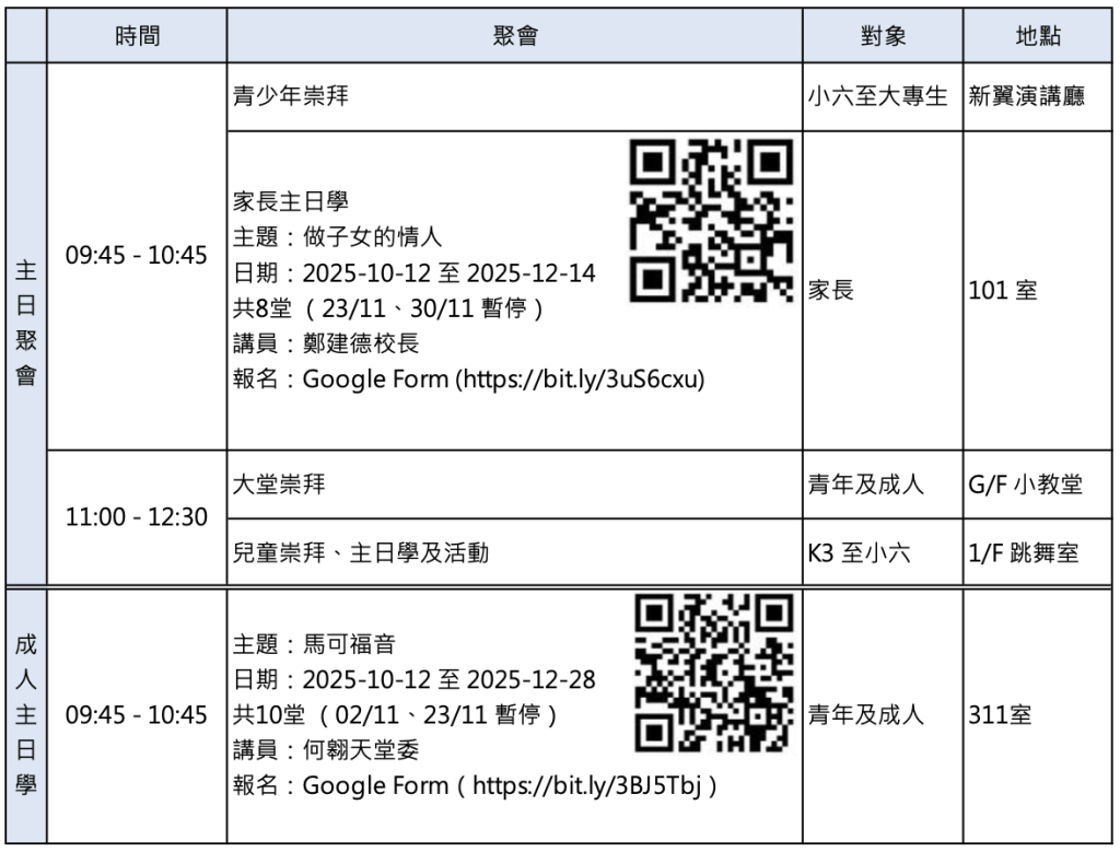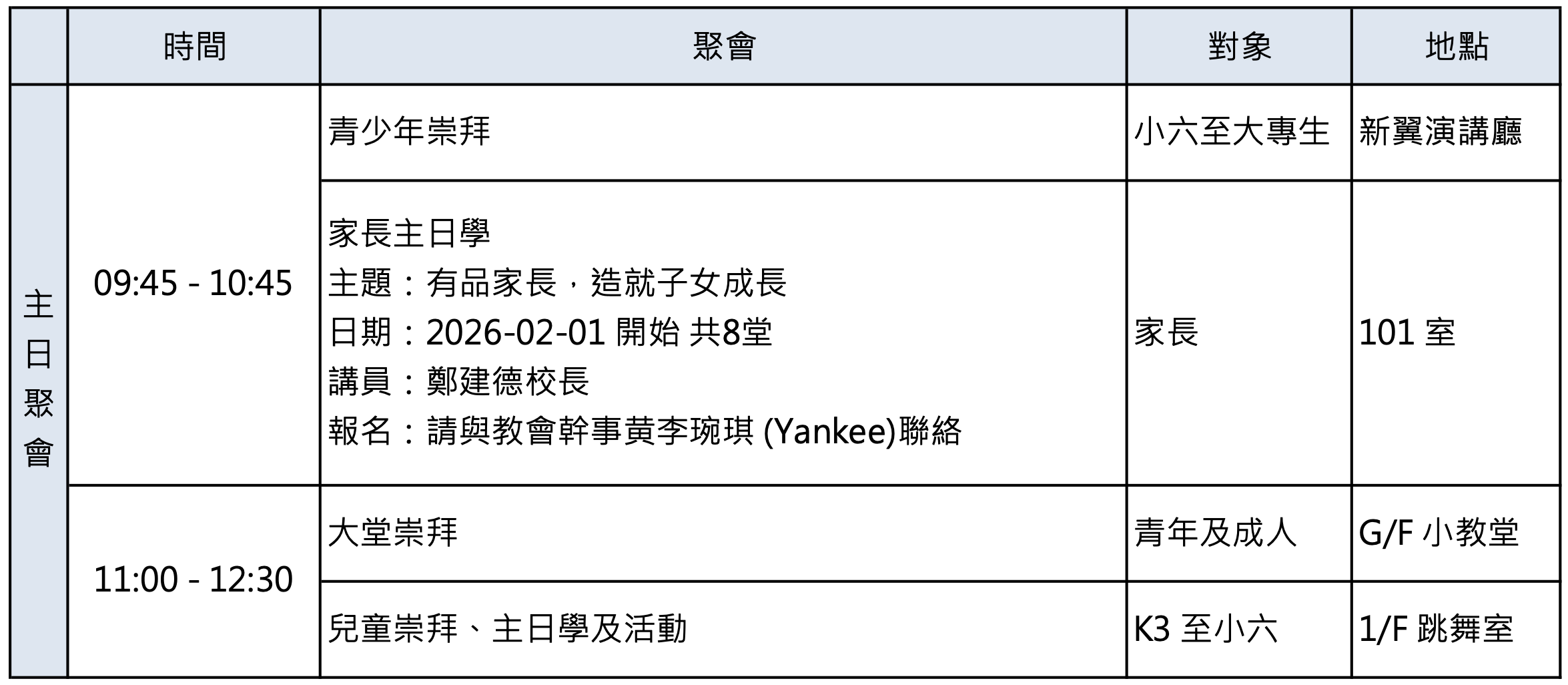 聚會時間表